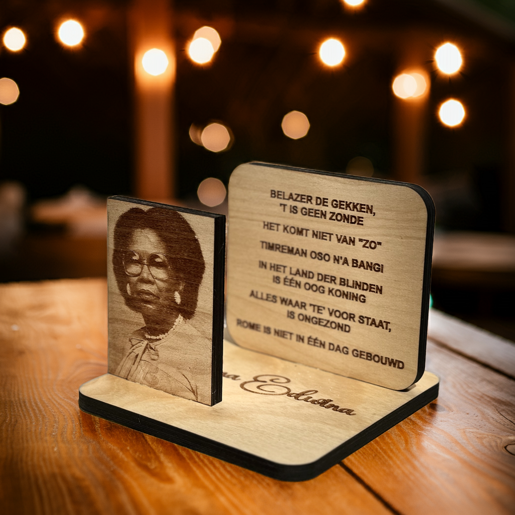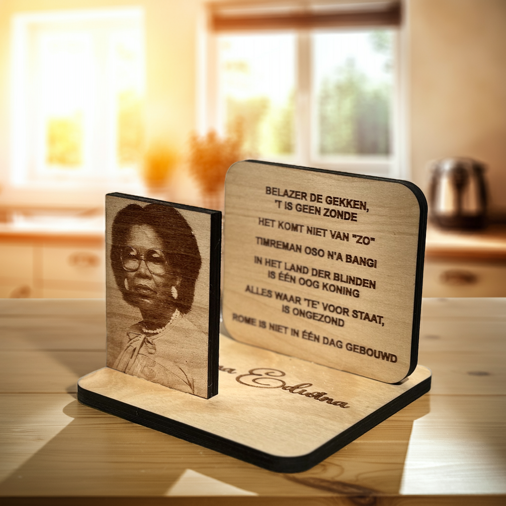 Deze puzzel is te personaliseren met een naam of tekst van maximaal 7 woorden. Uw personalisatie wordt op de achterkant van de puzzel gegraveerd en blijft daardoor voor altijd een persoonlijk cadeau. In uw winkelwagen kunt u in het vakje: "Speciale instructies voor bestelling" de naam of tekst aangeven. Voorbeeld: “Deze puzzel is van (naam)”